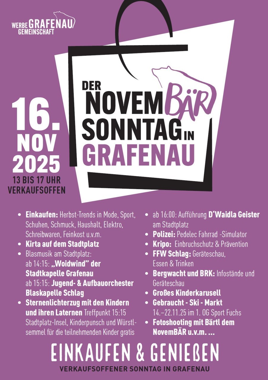 📣🐻 Grafenau lädt ein zum NovemBÄR Sonntag!